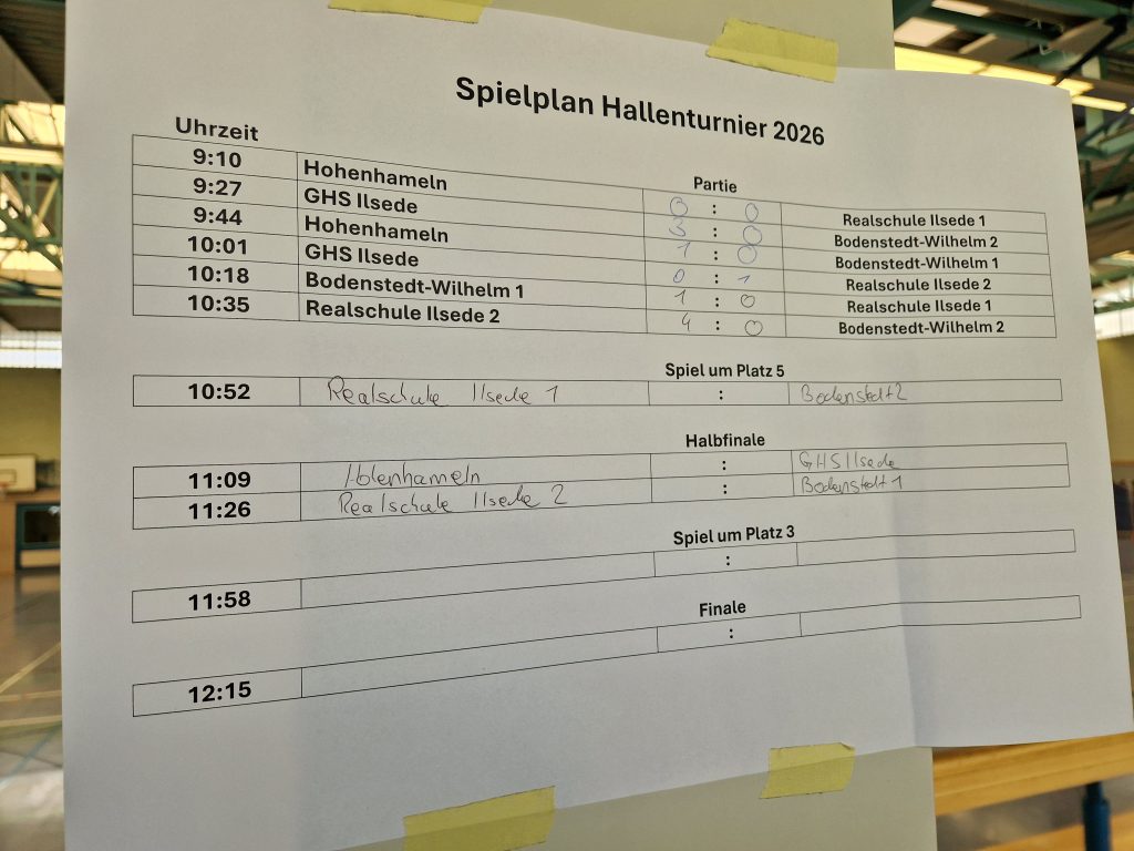 Am heutigen Donnerstag (09.04.2026) veranstaltete die Realschule Groß Ilsede ein interschulisches Fußballturnier. Sechs Mannschaften von vier Schulen aus dem Landkreis Peine lieferten sich faire Duelle um die Plazierung. Eine sehr gelungene Veranstaltung, die im kommenden Jahr wiederholt werden möchte (gerne mit noch mehr teilnehmenden Schulen!).