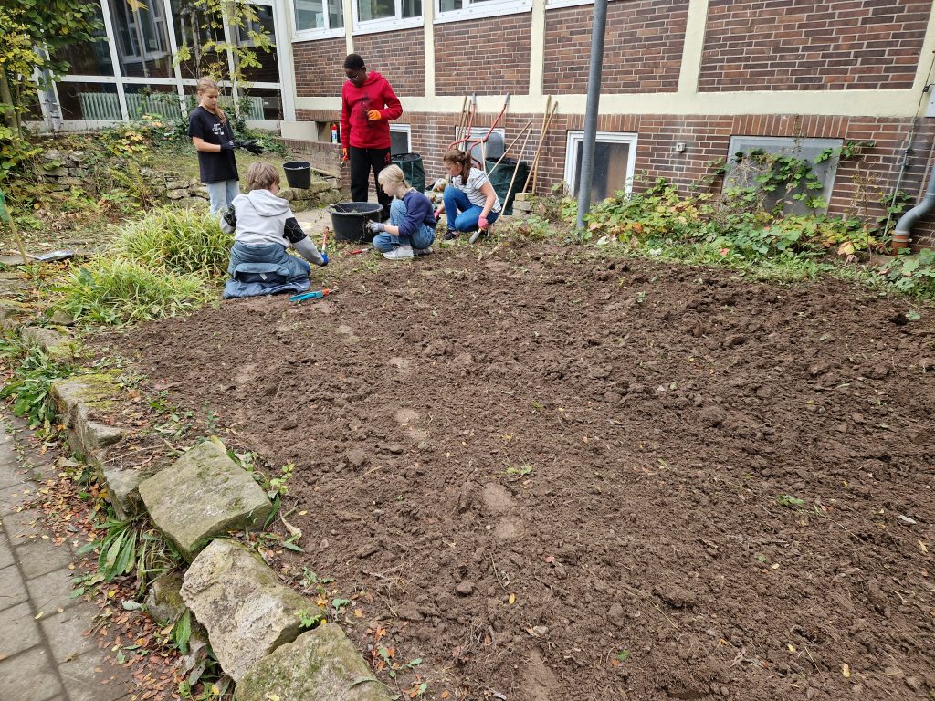 Am 08.10.2025 fand der Schulgartentag 2025 statt. Über 40 Helferinnen und Helfer aus Eltern-, Schüler-, und Lehrerschaft haben in unserem Schulgarten Umgegraben, Beschnitten, Geschleppt und Gewerkelt. Auch das Wetter hat mitgespielt und uns erst am Ende mit ein paar Tropfen abgekühlt. Vielen Dank an alle Beteiligten für das tolle Ergebnis!